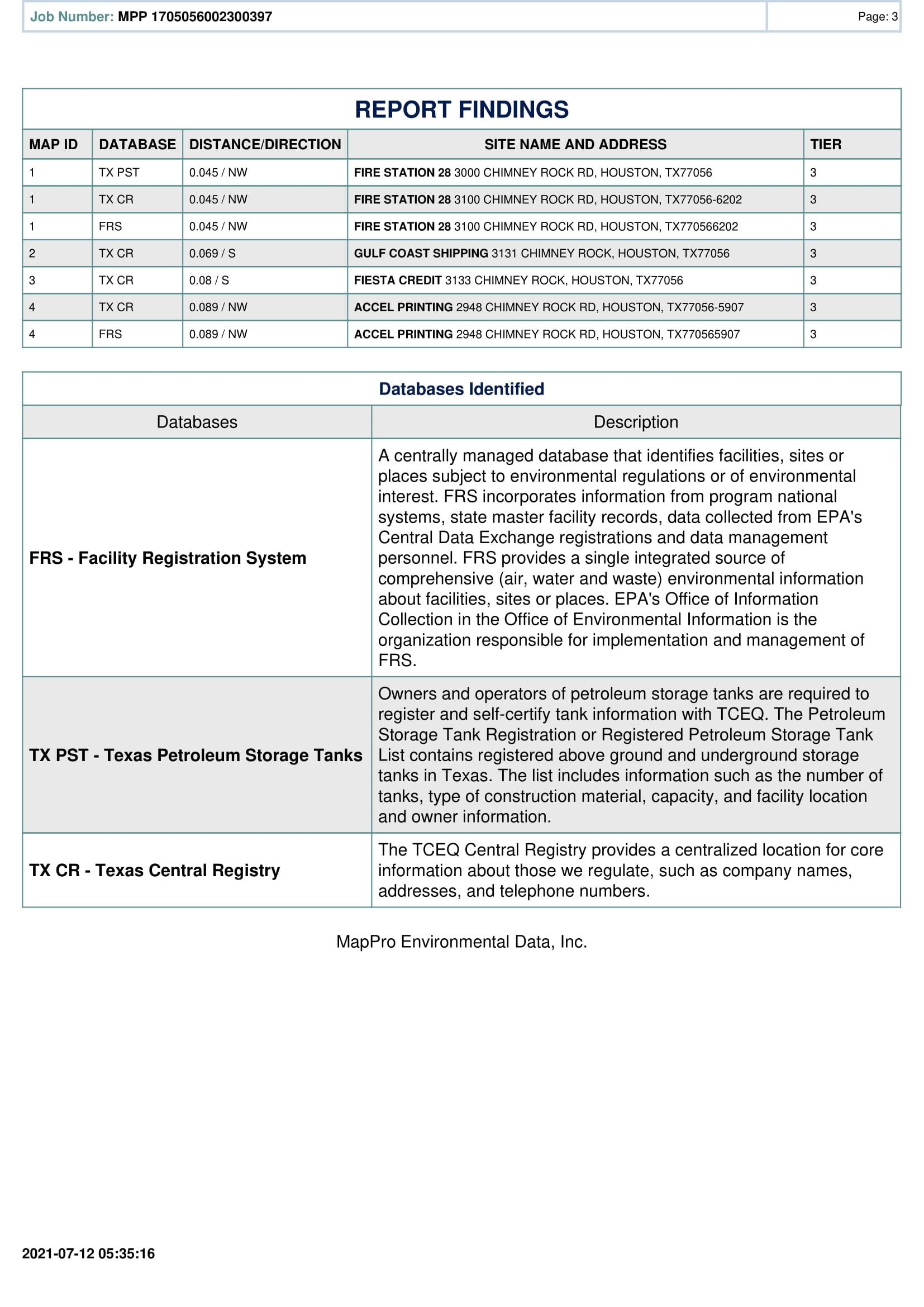 Contact UsFrom “Brownfields” to “Clean”, government and private agencies working in the public domain need quick, reliable environmental reporting. MapPro Plus is the fast, comprehensive and credible solution! Preview a sample Rapid Alert or Rapid Alert Plus report to better understand what our system can provide.